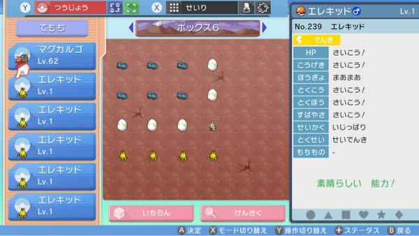 参考:タマゴグループ掛け持ち一覧 グループの並び順は攻略本の表記に基づく。 同系統ごとに「進化前、かつベイビィではない」ポケモンのみを記載。 金銀では人型、不定形、鉱物グループは掛け持ちが不在なので表からは省略している。 エレブー ⇒Lv30で『エレキッド』から進化 ↓ エレキブル ⇒『エレキブースター』を持たせて通信交換で『エレブー』から進化 共通の入手方法 進化・タマゴで入手 過去作からポケモンバンクで移動 ( 第6世代を表示) 生息地 USUMタマゴグループが「未発見」のポケモン (67) アグノム (400歩) アルセウス (歩) アンノーン (100歩) ウソハチ (5100歩) エムリット (400歩) エレキッド (6375歩) エンテイ (400歩) カイ