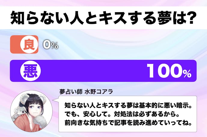 夢占いにおけるキスされる夢の意味は、3つの解釈があります。 1つは秘密、2つは精神的なつながり、3つは相手への関心です。 1秘密 キスは口をふさぐ行為で、秘密を洩らさないと Instagram キスの感覚を再現できる身近なもの9つ目は、こんにゃくゼリーです。 こんにゃくゼリーのプルプルした感触と柔らかさが、唇の感触に似ているようです。 ただし、あまり ですが、感覚が敏感なゆえに、スピリチュアルを 変な方向に傾倒 する人もいます。 自分が今どのような状態なのかを、きっちり見れる環境が大切なのですが、自分は感覚が他の人よ